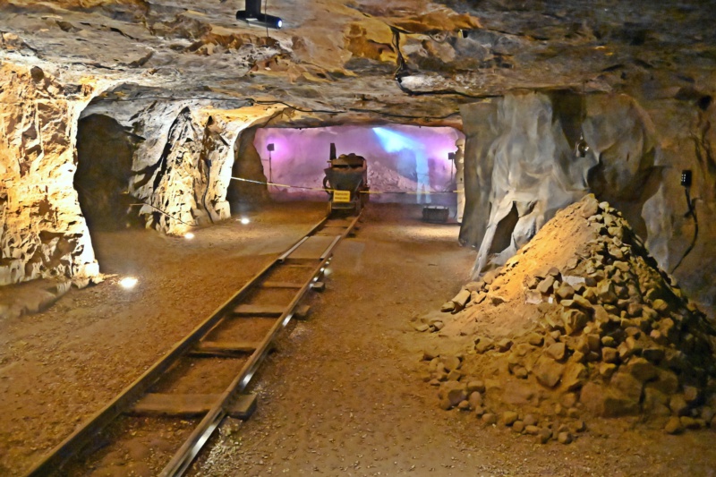 Mit einer Grubenbahn ging es 400 m in den Braunenberg und von dort zu Fuß durch die verschiedenen Gänge und Stollen.