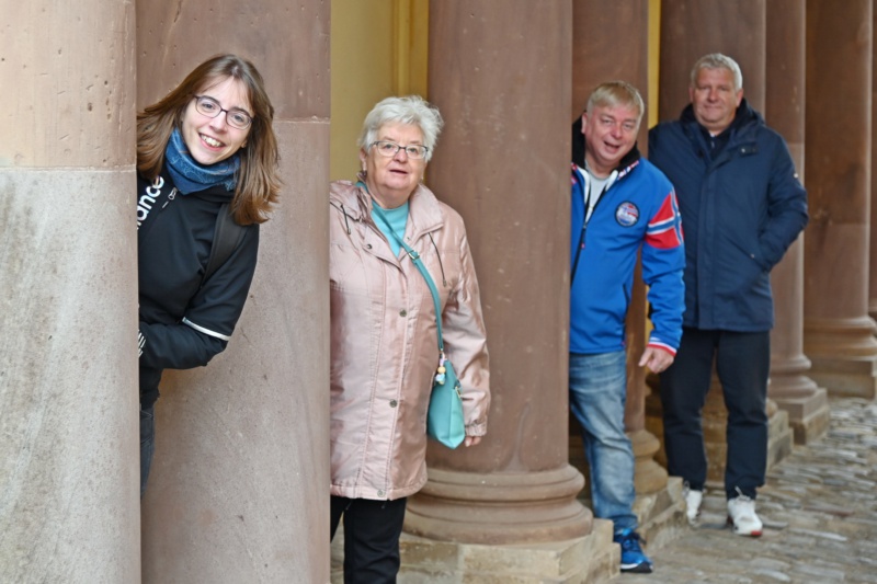 Eine Woche nach dem Pokal-Achtelfinalsieg in Solingen ging es am 4. Oktober mit dem Bulli der „Lippischen“ in entgegengesetzter Richtung nach Osten zum Ligaspiel beim BSV Sachsen Zwickau. Durch eine kurzfristige krankheitsbedingte Absage waren wir diesmal nur zu fünft und hatten zwei große Trommeln und eine Snare im Gepäck. An unserem ursprünglichen Etappenziel, der Marienglashöhle Friedrichroda südöstlich von Eisenach, mussten wir feststellen, dass die nächsten beiden stündlichen Führungen durch die Tropfsteinhöhle bereits ausgebucht waren. Also fuhren wir weiter nach Weimar und sahen uns dort stattdessen das Schloss Belvedere, die vor fast 300 Jahren im Auftrag von Herzog Ernst August I. erbaute barocke Sommerresidenz der ehemaligen Herzöge von Sachsen-Weimar und Eisenach, mit seinen Gartenanlagen und der Orangerie an.