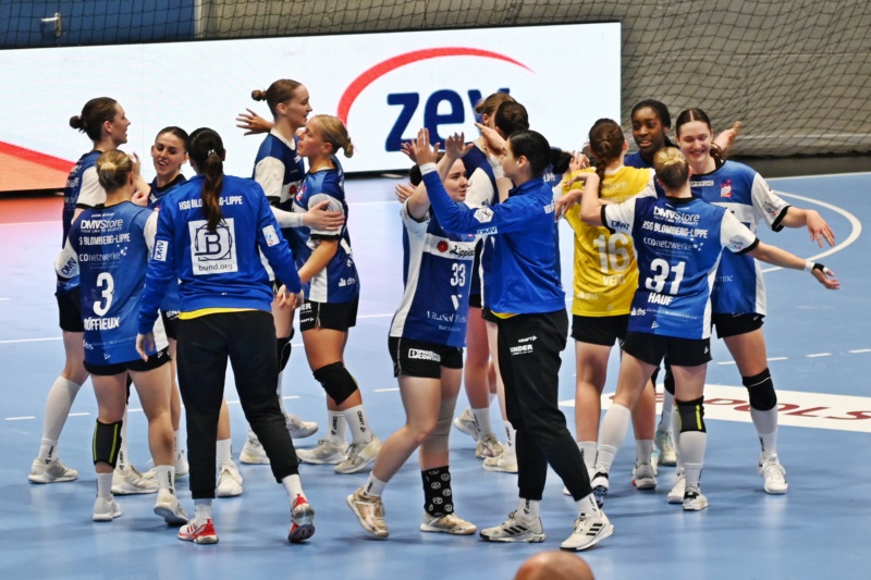 Nach drei Heimsiegen hatte die HSG damit auch die ersten Auswärtspunkte der Saison 2025/26 geholt und blieb an der Tabellenspitze der Alsco HBF. In der Liga nicht mehr der Jäger, sondern plötzlich der Gejagte zu sein, fühlt sich irgendwie noch ungewohnt an – aber wir würden uns gern daran gewöhnen! Trotz Sturm und Regen hatten wir eine angenehme Rückfahrt nach Blomberg uns sagen danke an unsere Fahrer Katrin und Axel!